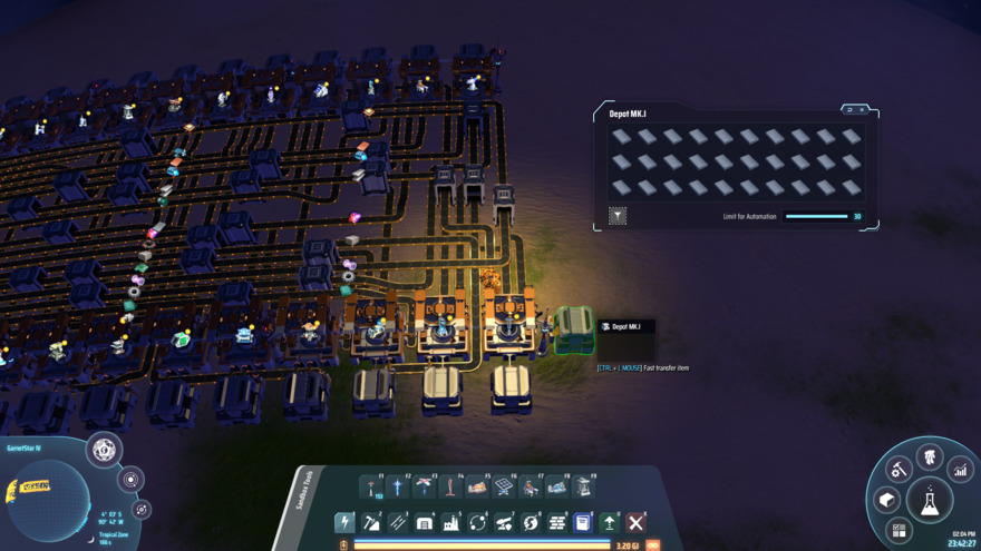 Early to mid late game proliferated bus / entry into planet logistics. Can chain feed or direct feed into system from storage or fog farms. *chain feed input and output is the signal-406 icon. *manual feed T ingots for the planet logistics. Upgrade conveyors to speed up processing. If you don't know what recipe it is, just look at the storage next to it, which has the filtered item. *useful for non learned recipes.