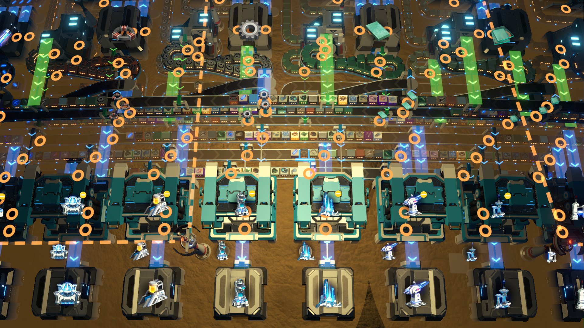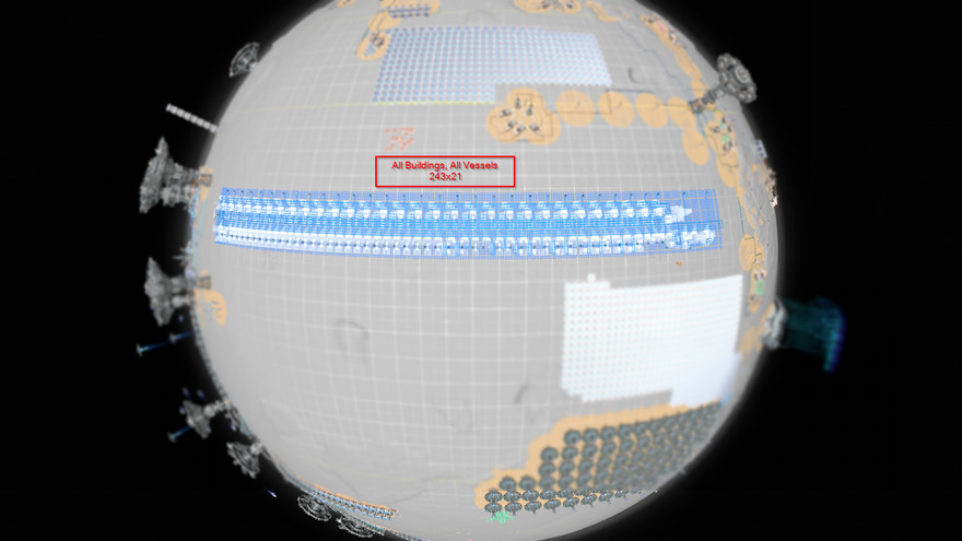 All 46 Buildings mall + all Vessels + Sprays all input and sprays intermediate. Uses Quad stacked, Triple load balanced lines in a compact footprint for high resupply @ 600 / minute input for each element.