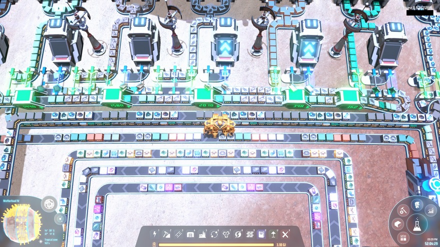 This HUB creates every building in the game. All ingredients are proliferated and stacked. Uses sushi belts to provide every ingredient to every factory. Counters are provided to check empty belts on return.