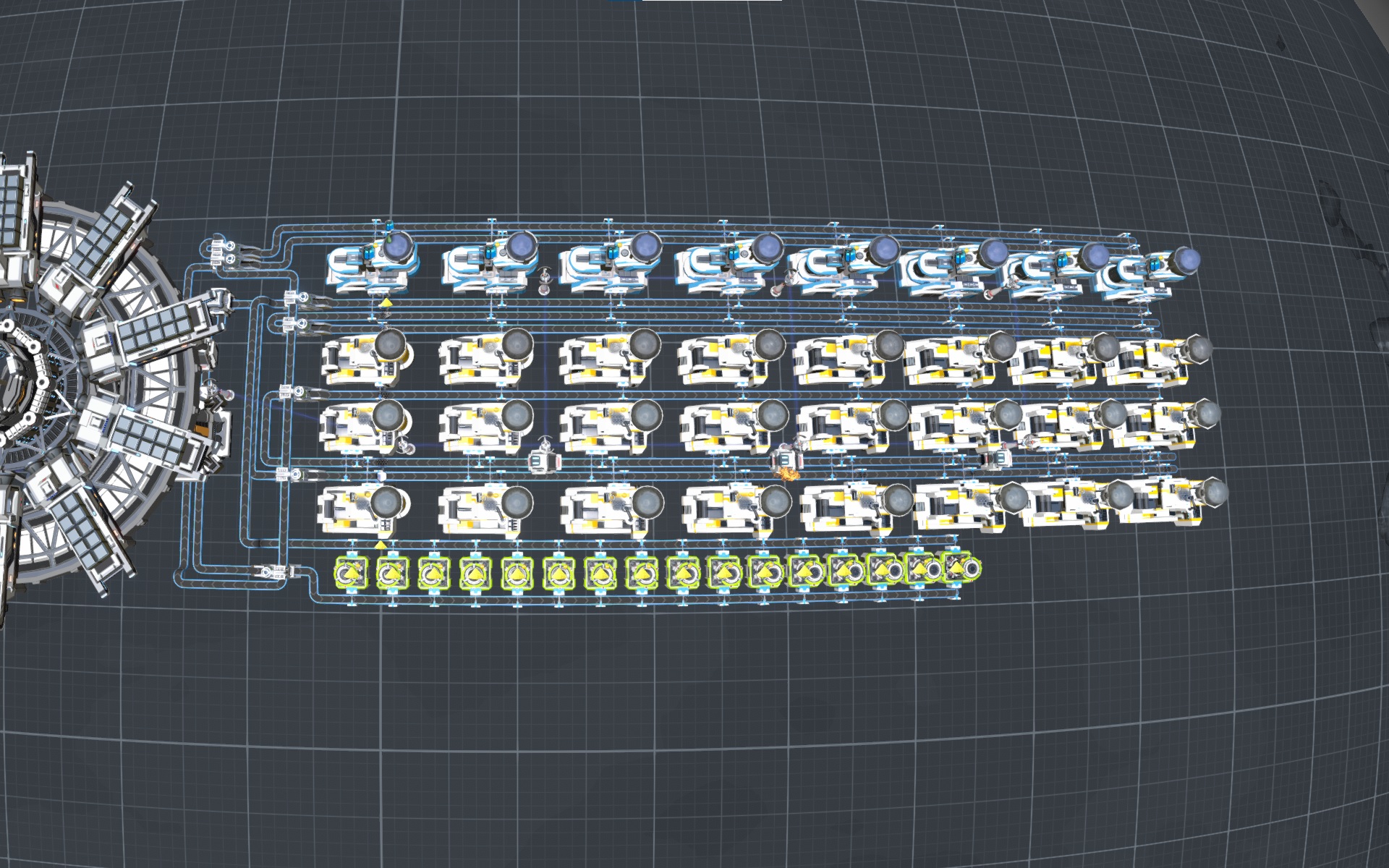 Doesn't rely on Integrated Logistics upgrades. Doesn't use white sorters (uses few pilers instead).