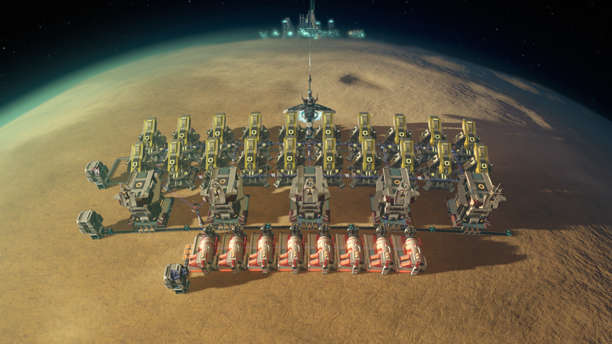 Place a Signal Tower so the range (blue ring), is close but not touching the Dark Fog ships. Behind this tower, build a Landfall Fortress, but wait before powering it up. 1 - Manually load the Missile Set into the storage by the Missile Turret. 2 - Wait until everything has finished being built. 3 - Add Energetic Graphite to the Thermal Power Plant (to start increasing the threat level) 4 - Placing a Signal Tower + BAB in front of the signal tower to attack the Dark Fog ships. 5 - Once the initial group of ships is gone, place another Signal Tower + BAB to destroy the base. 6 - Put the Geothermal Power Station in the hole left by the enemy base. 7 - Repeat and continue pushing forward with Signal Tower + BAB to destroy all bases on the planet.