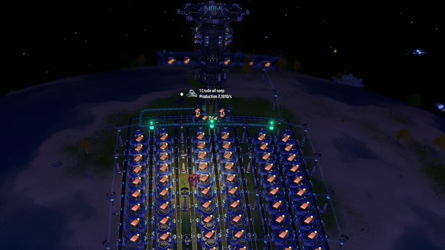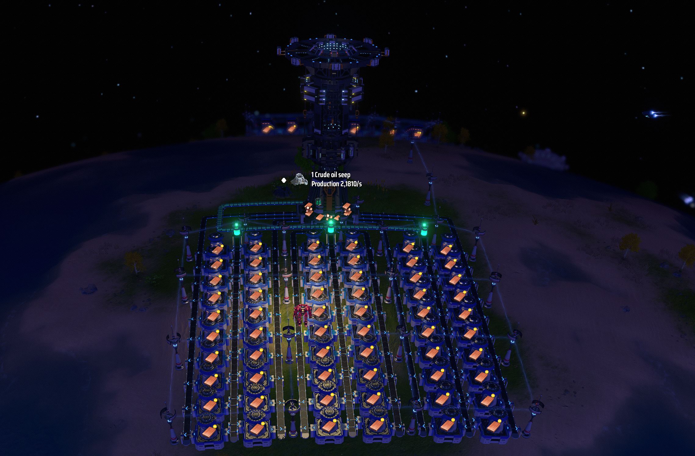 A Copper smelting facility with a planetary logistic station, Tier 3 belts, Tier 3 sorters, blue smelters and Tier 2 (blue) coating. This is for the transition part of the game where you still do most on the local planet.