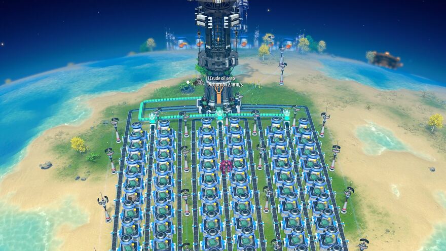 A Glass smelting facility with a planetary logistic station, Tier 3 belts, Tier 3 sorters, blue smelters and Tier 2 (blue) coating. This is for the transition part of the game where you still do most on the local planet.