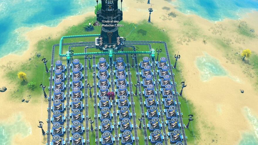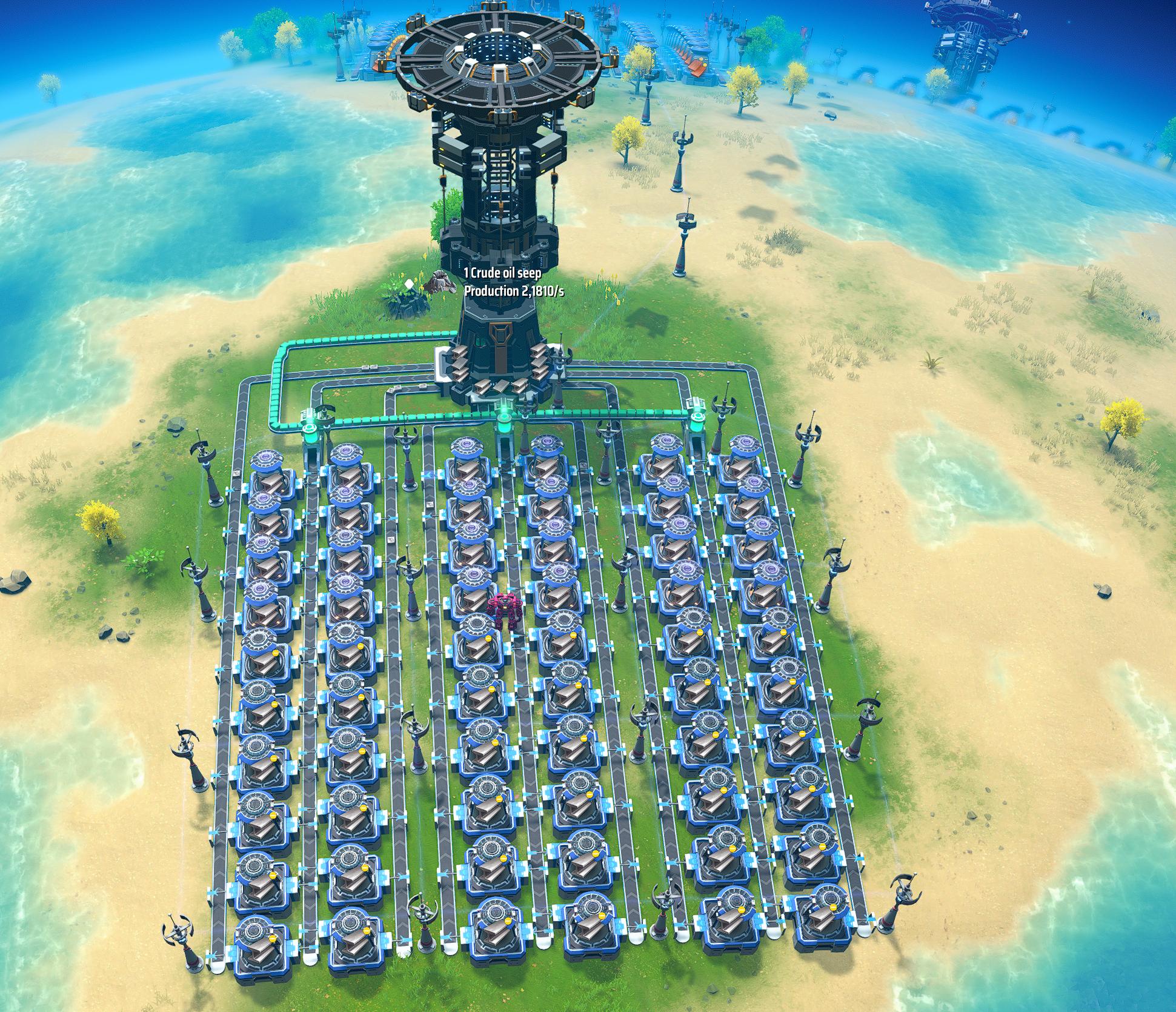 A Steel Crystal smelting facility with a planetary logistic station, Tier 3 belts, Tier 3 sorters, blue smelters and Tier 2 (blue) coating. This is for the transition part of the game where you still do most on the local planet.