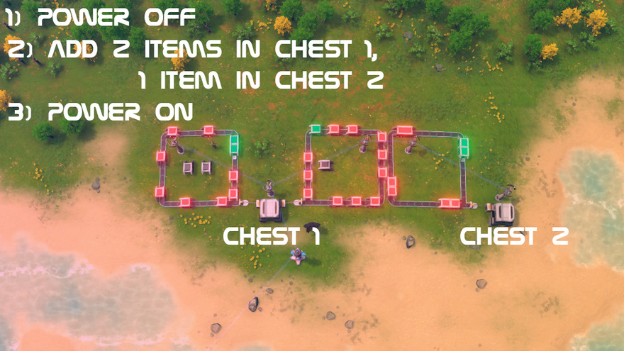 3) Add 2 items in left chest, 1 item in right chest (any item)