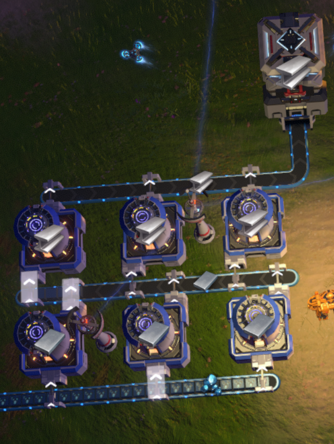 A small mall setup for midgame steel production. Helps to shore up midgame steel beam demands.