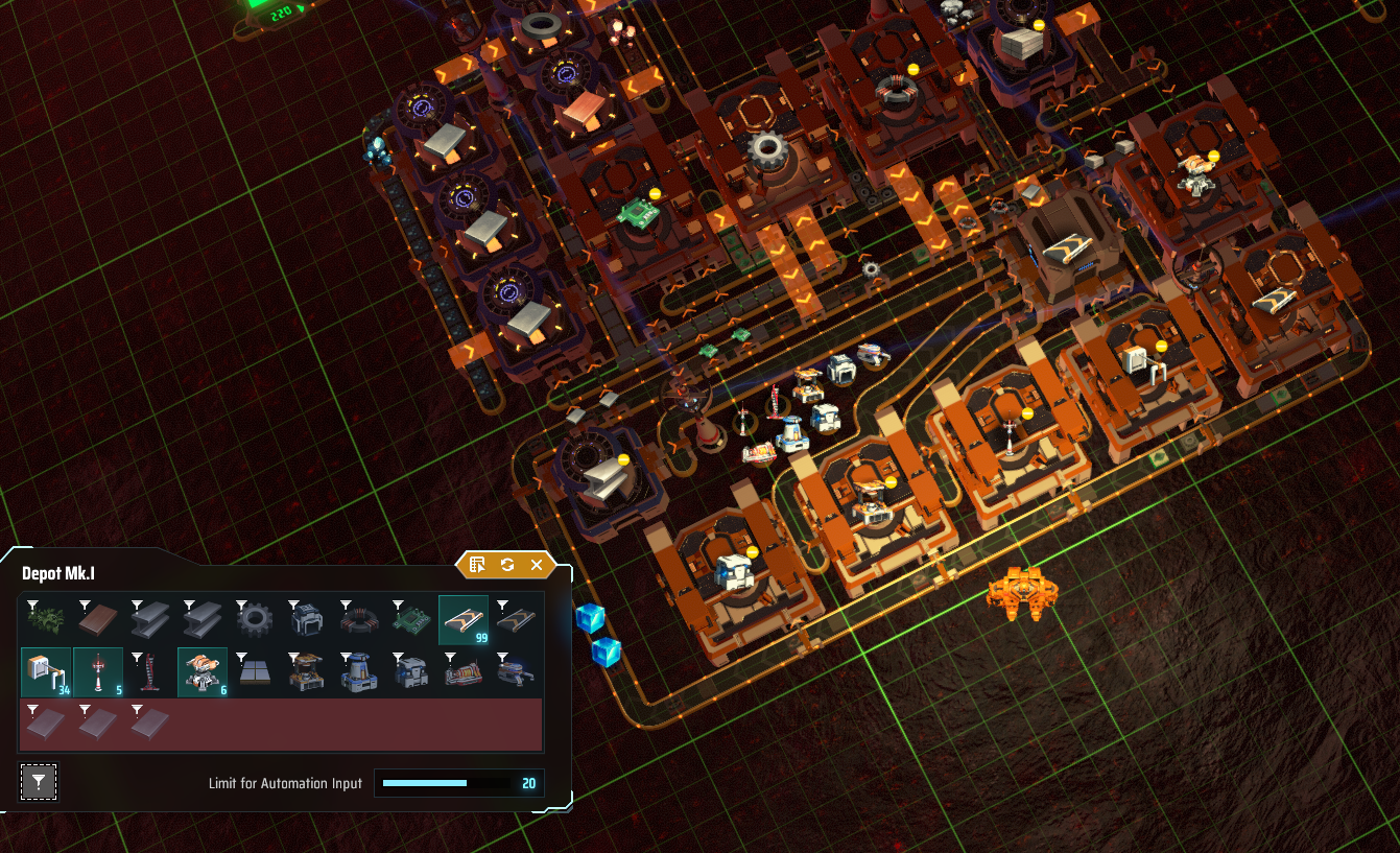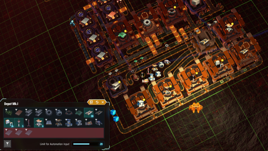 If you connect the stone lane, you can also produce: - Depot MK1 (stone connected) - Smelter MK1 (stone connected) - Thermal Power plant