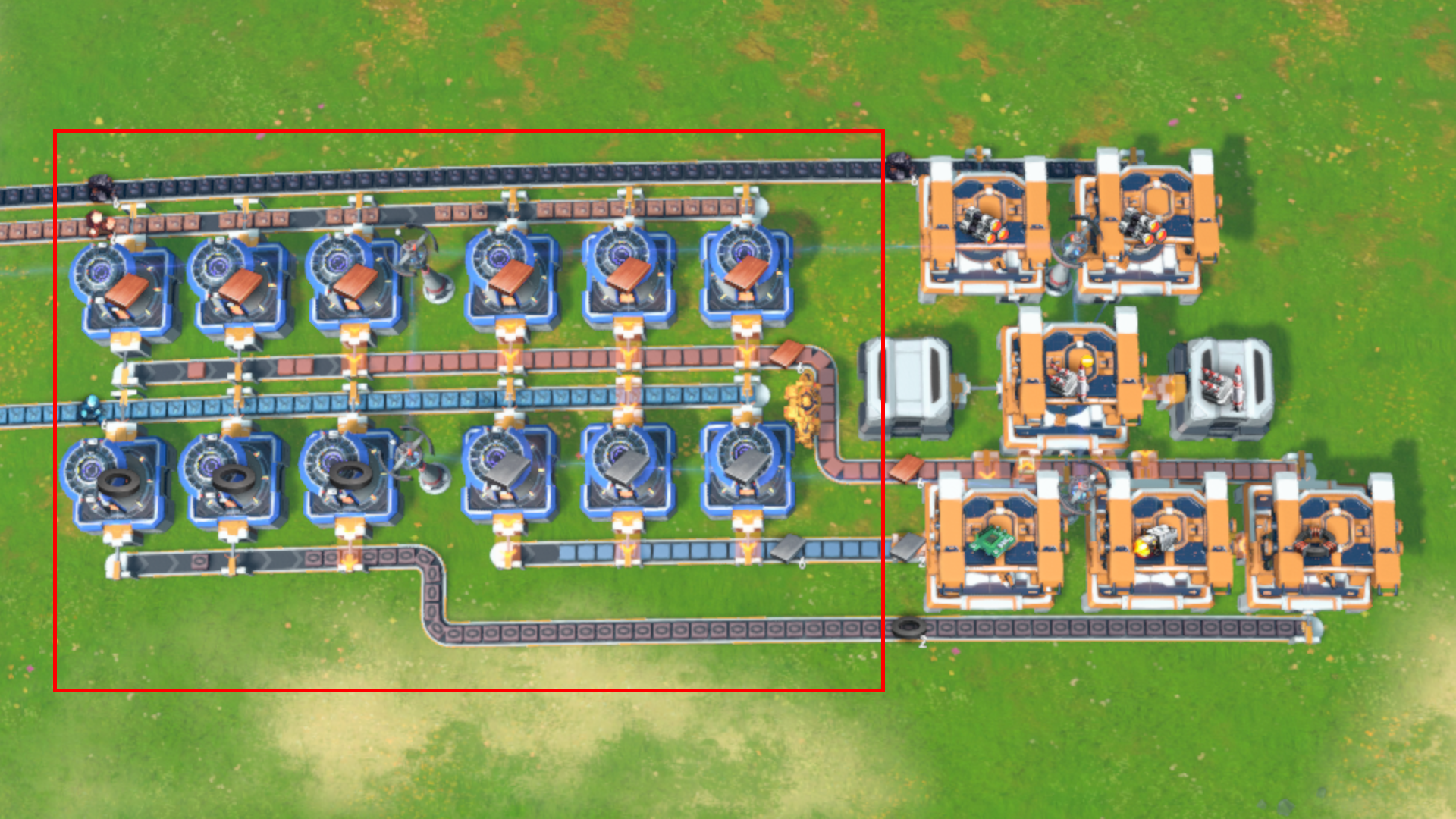 Input: 6 Coal per second (1 full yellow belt). Input: 6 Iron Ore per second (1 full yellow belt) Input: 6 Copper Ore per second (1 full yellow belt) Output: 6 Coal per second (1 full yellow belt). Output: 6 Copper Ingots per second (1 full yellow belt) Output: 3 Iron Ingots per second Output: 3 Magnets per second Simple blueprint to prepare inputs for Missile Set Production blueprint