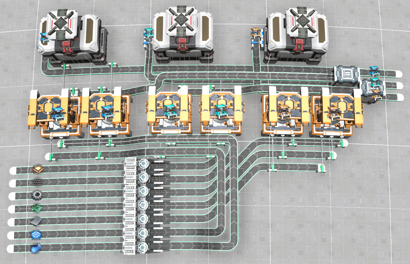 Design idea is to have all materials brought in though any means desired. Output is all on the opposite end where you can use any system you desire on the output.