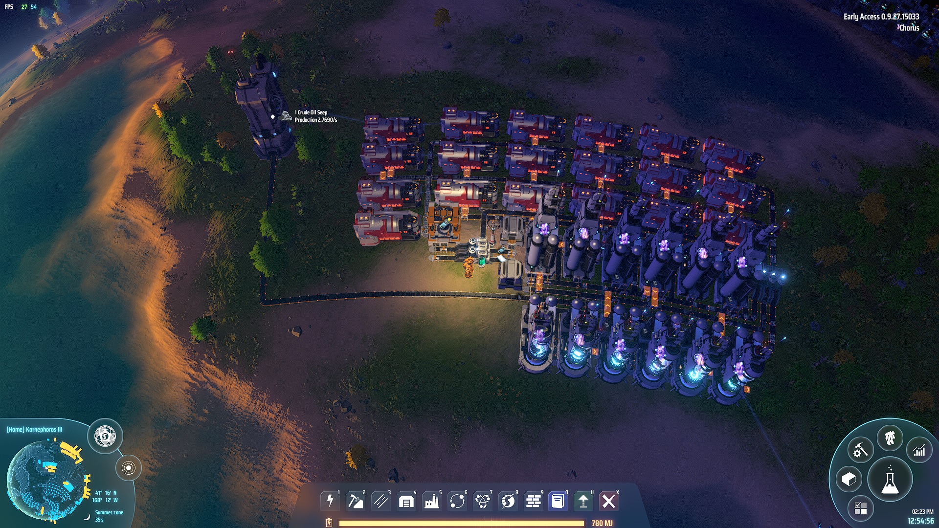 Use 2/s Crude Oil to produce net 19 MW power. Excess Hydrogen is converted to Hydrogen Fuel Rods, while excess Energetic Graphite is burned to keep the Hydrogen flowing. Proliferator can be used for additional power and on Fuel Rod production and output.