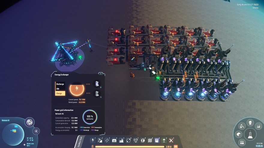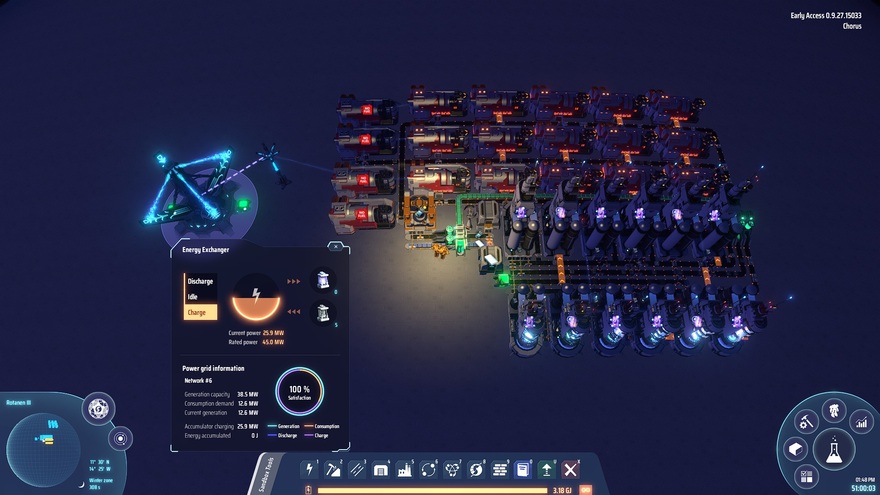 Requires X-Ray Cracking. I find it useful to place this down after researching X-Ray Cracking and Proliferator Mk 2. Can be supplied from a single typical crude oil extractor. Mining rocks on the starting planet will provide enough titanium for several stacks of Hydrogen Fuel Rod before leaving the planet for the first time.