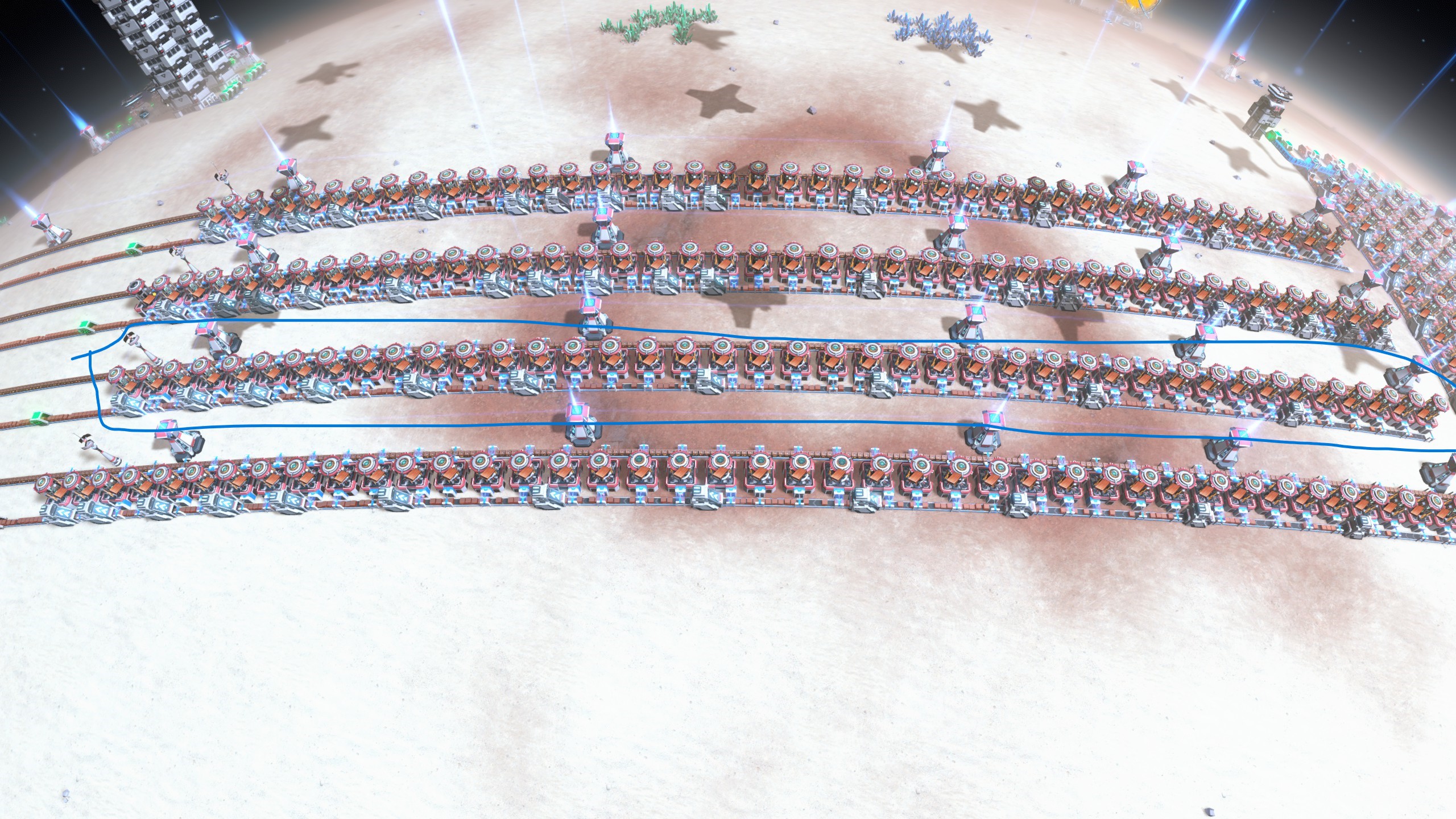 Trying to saturate outgoing belt. Makes 6,150 per minute in one row. Sandbox mode.