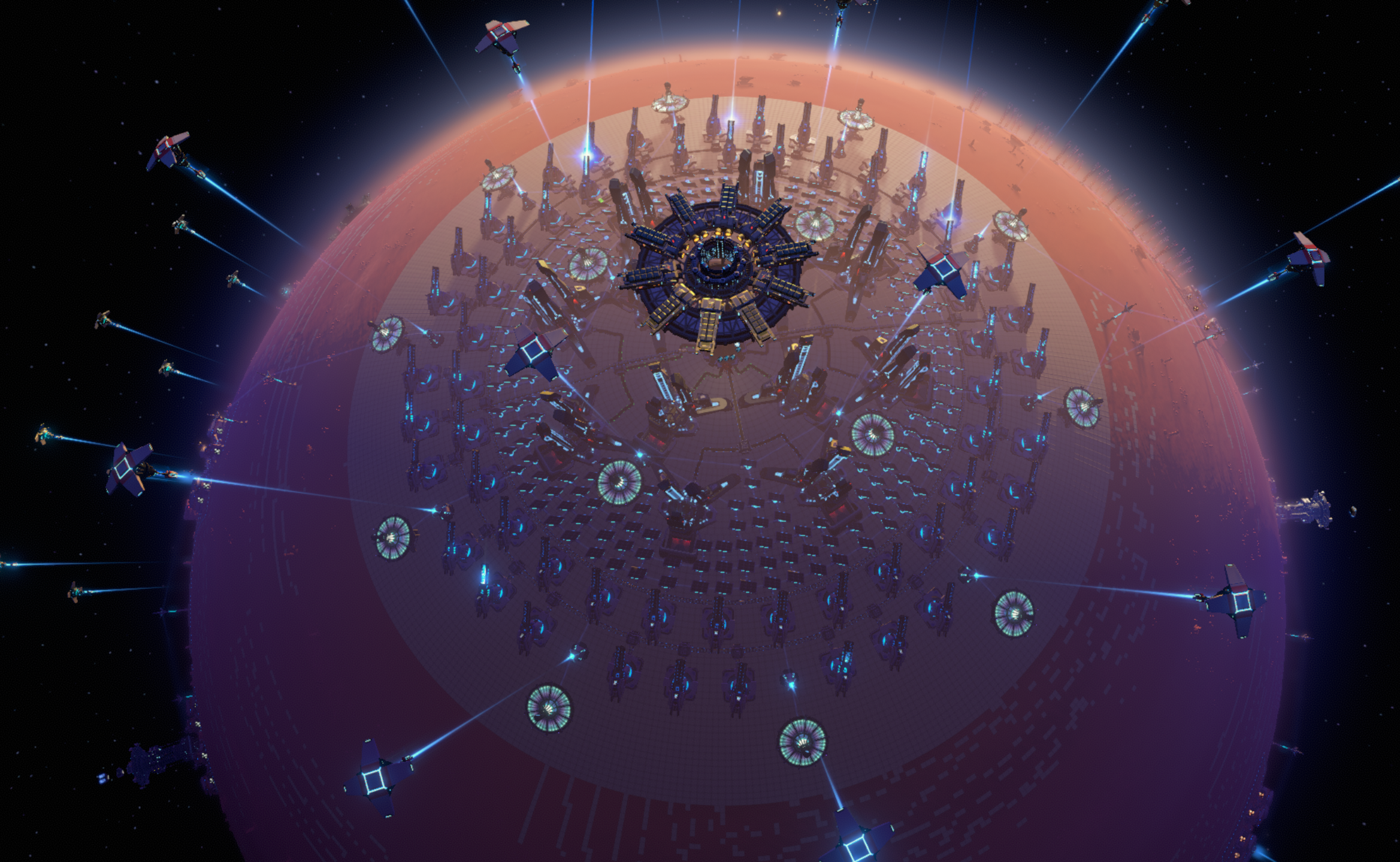 Place this on both of your planets poles, and set an alternating orbit for the inner and outer rings of the Sail Launchers. Make sure to have your Solar Sails and Small Carrier Rockets available within an Interstellar Logistics Station. Ideally, this should be built on a planet that keeps both poles in the sun throughout it's rotation.