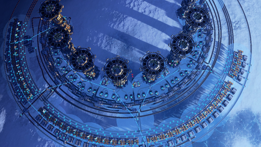 Here is a big mall for the midgame. It works from the yellow research. All buildings available from this level are manufactured. Except for the floor tiles. These are better manufactured separately.