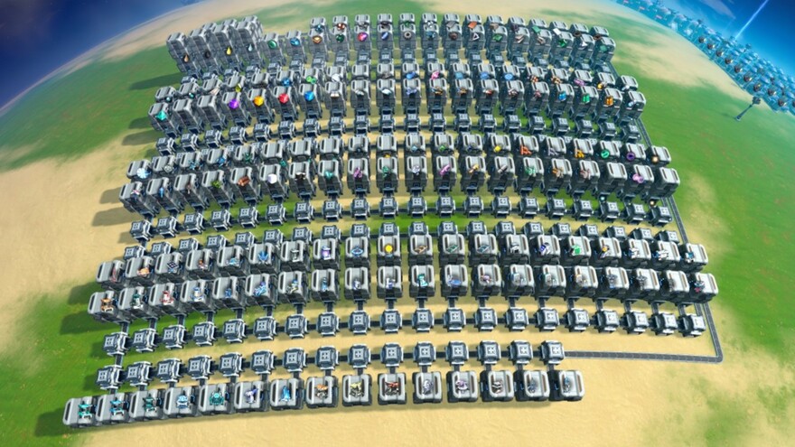 Be aware: - When deleting this, it can cause some lag (if any at all) due to all the splitters with their calculations - There are only a limited number of slots per item. If you have any full ILS/PLS i suggest, to set them to remote supply and set the lever to 0, so they dont fill again. -The first splitter (at the first box) has the input priority for the starting boxes to prevent clugging. - Use mk3 Belts for the speed. below will work, but needs way longer (360/min instead of 1800/min)