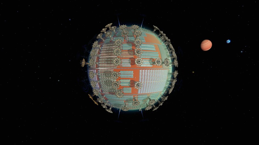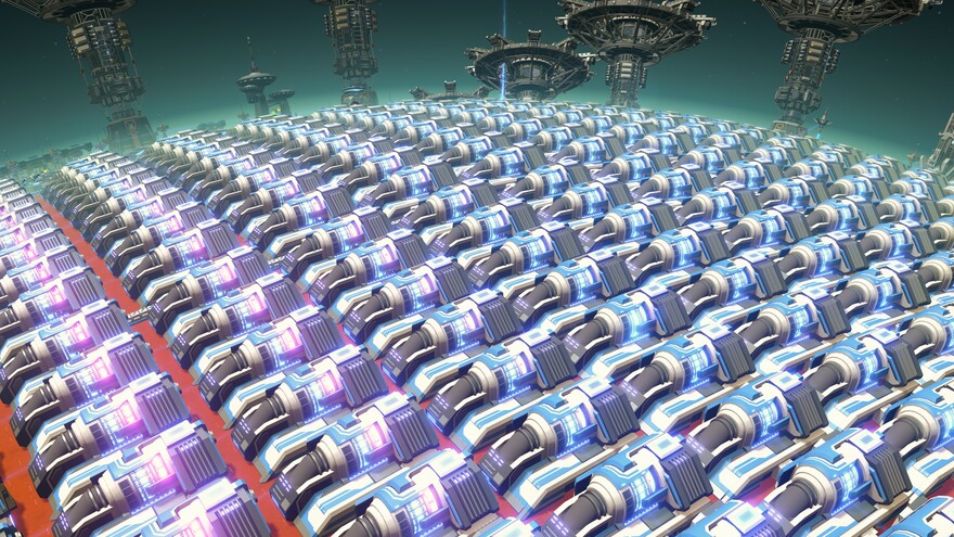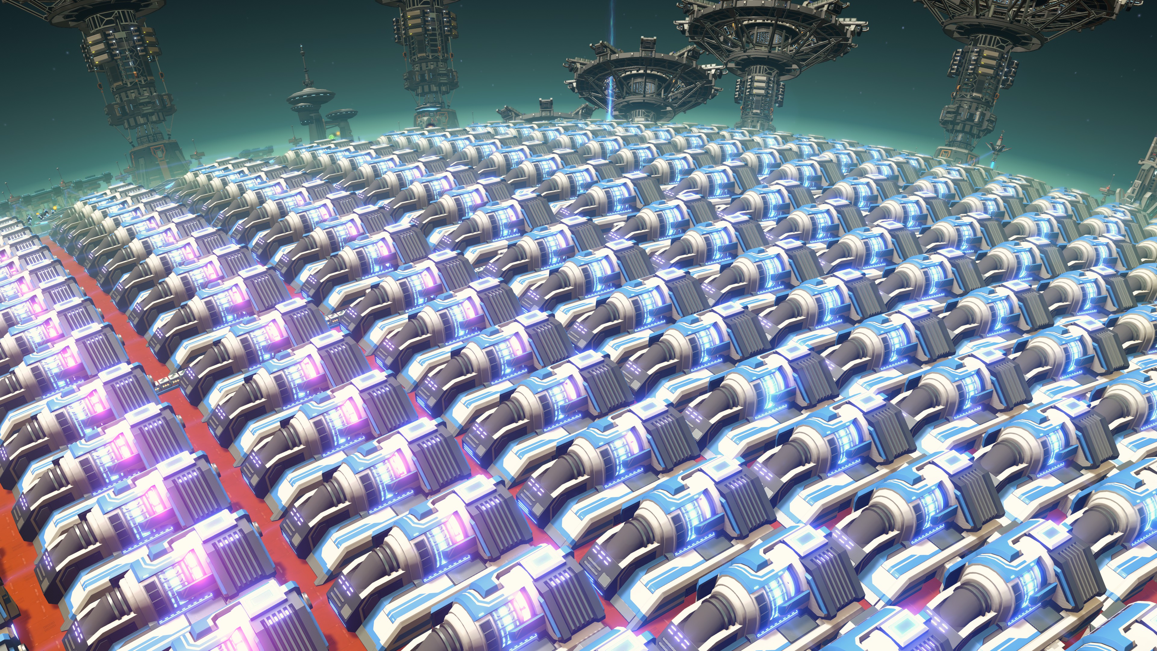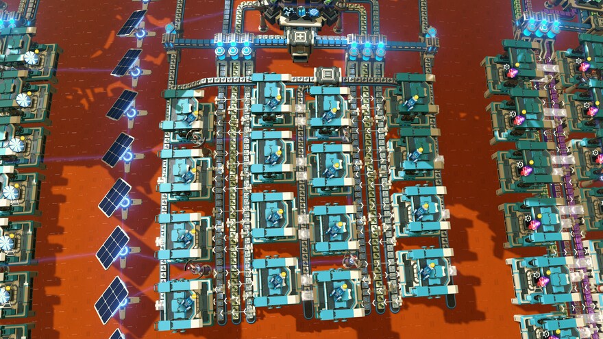 This Factory imports raw ore (including rare ores and sulfuric acid) and produces 5 carrier rockets and ~30 solar sails per second. It powers itself with deuterium fuel, but that may be slightly undersized, supplementing with artificial stars is recommended.