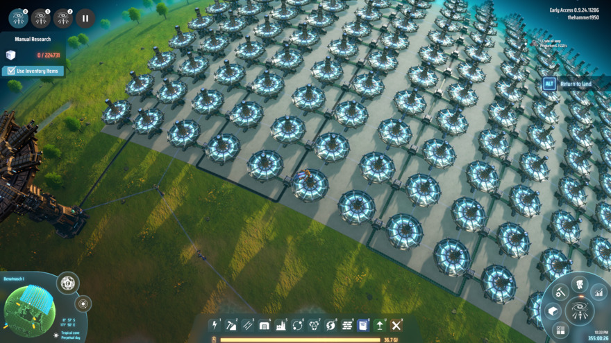 Ray Receiver Farm with Graviton Lenses fed to it. Designed to occupy the entire equatorial region of a tidally locked planet on the sunny side. Must bury all mining nodes in the area with concrete prior to construction. ***Edit*** When I have time, I will add the Critical Photon version of this build.