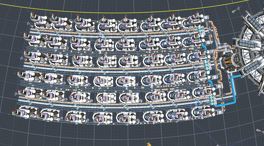 A modification of titanium_lord's "refined oil multiplier" factory, this one doesn't use satellite substation. Uses coal and hydrogen supply to multiply your refined oil. Drop 20-30 refined oils into the ILS or onto the belts feeding the refineries directly to start-up the factory. Produces 1440 refined oil/m, uses 1440 coal/m and 1440 hydrogen/m. Placeable anywhere where it fits between the tropical lines (+- 47 degrees north-south)