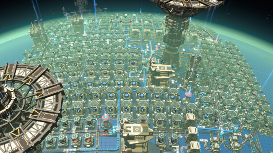 Big endgame BP using Dark Frog Factories and sushi , need import of graphene/Carbon nanotube, you can fit 13 on a planet hemisphere + 2/3 of equator, the rest will be free space