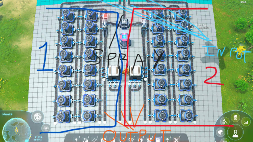 a Smelting factorie to smelt every resource you need. with 2 modules (1 left, 1 right) modelues have 16 smelting facilities(8-8) that have 2 input lines of conveyor belt mk3, 1 spray coater, 1 traffic monitor and 2 storage mk1. there are 2 output lines and the center input line its for de proliferator