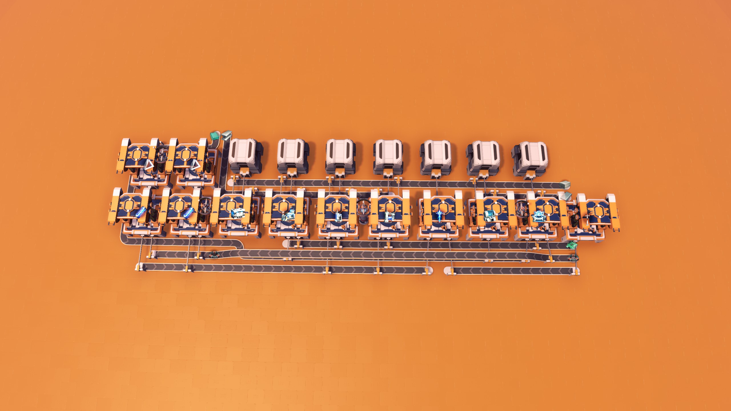 Continue expanding the Starter HUB by connecting this to part #2 (overlap the far-right assembler). This one produces Matrix Labs, Storage Tanks, Wireless Power Towers, Oil Extractors, Oil Refineries, Chemical Plants and Storage Mk.II.