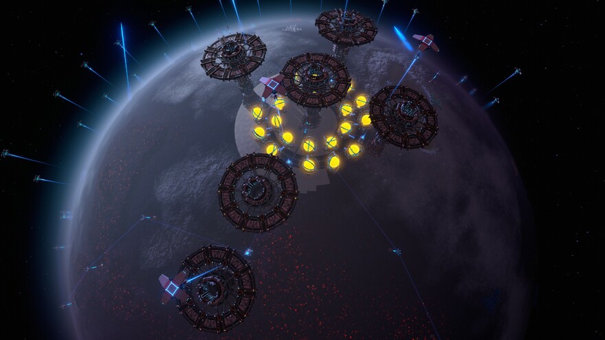 Endgame quick planet setup. Meant to be built on either pole. It remote requests typical buildings you will require to set up production and mining, and provides power through proliferated antimatter fuel rods. Requires a mall planet that can actually deliver items. If you wish to use this to deliver proliferator to the rest of the planet, put drones into the central ILS. For warpers, put drones into the bottommost ILS (tip of the dagger) One ILS is intentionally longer down one direction so that you can always figure out the orientation of the ILS, and click on the correct building to retrieve the items you want regardless of the planet.