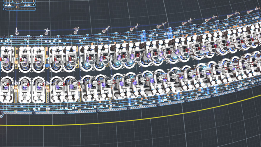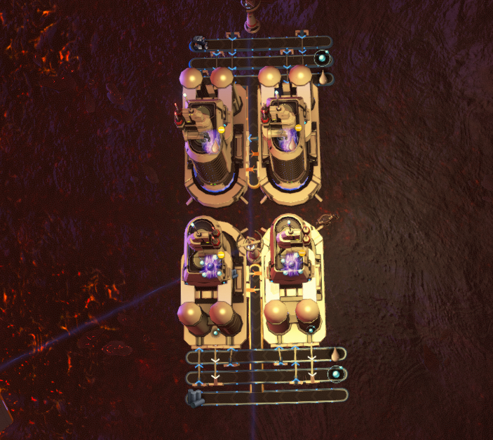 This is an expandable refiner setup for converting 30/s coal into graphite in a 1:1 ratio using refiner special recipes. The refined oil and hydrogen can create a perfect closed loop. To start using it, place as many refiners as you'd like, then connect the top and bottom hydrogen and refined oil belts to close the loop. The recipe needs to be primed with fuel in the first fuel producer in the chain (left) and then saturate the entire belt loop with hydrogen. Once saturated, disconnect input hydrogen from the loop. The refiners will then produce refined oil to feed the following refined oil refineries until the x-ray cracking can begin.