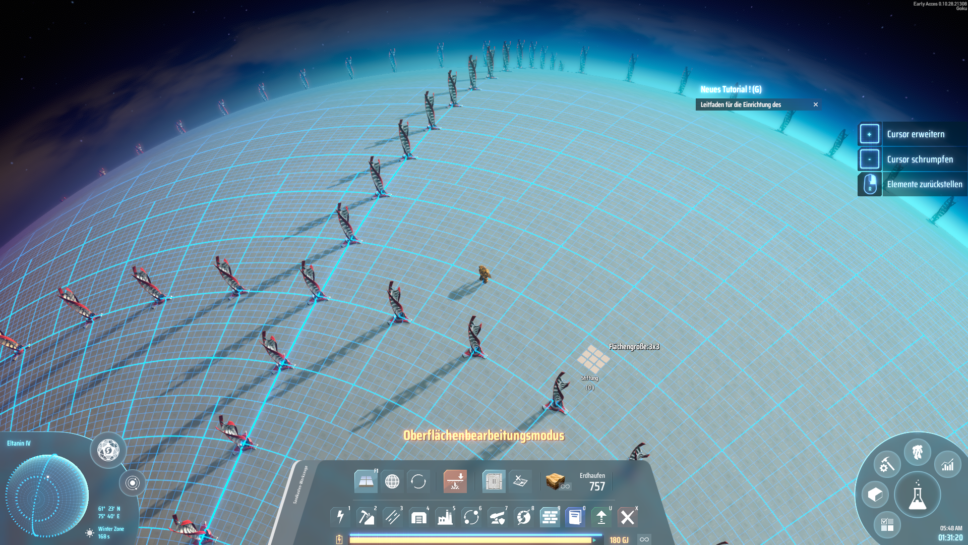 Dieser Bauplan beinhaltet ein Netz, das den Planeten mit 329 Windturbinen sinnvoll überzieht. Die Windturbinen wurden strategisch so platziert, dass sie den Planeten in verschiedene Zonen aufteilen. Dabei wurde die gesamte Äquatorzone freigelassen für größere Projekte und Fabriken. Die Stromausbeute ist zwar marginal, aber es dient mehr als ein Start-Up für einen neuen Planeten. Ich nutze es jedoch meistens auch auf meiner Startwelt, da Windturbinen ein Stromnetz etablieren und besonders kostengünstig sind. Ich fand die Idee gerade für das Early Game sehr sinnvoll. Außerdem bietet dieser Bauplan ein Netzwerk aus Windturbinen, das somit von fast überall einen sinnvollen und schnellen Zugriff auf das Stromnetz ermöglicht, sei es zum Entnehmen oder Speisen desselben. Da der Äquator und auch die Polkappen größtenteils freigelassen wurden, denke ich, dass sich die Windturbinen später sehr gut durch Solarpaneele ergänzen lassen. Ich hoffe, es hilft euch beim günstigen Aufbau eurer Heimatwelt oder beim Erschließen neuer Welten.