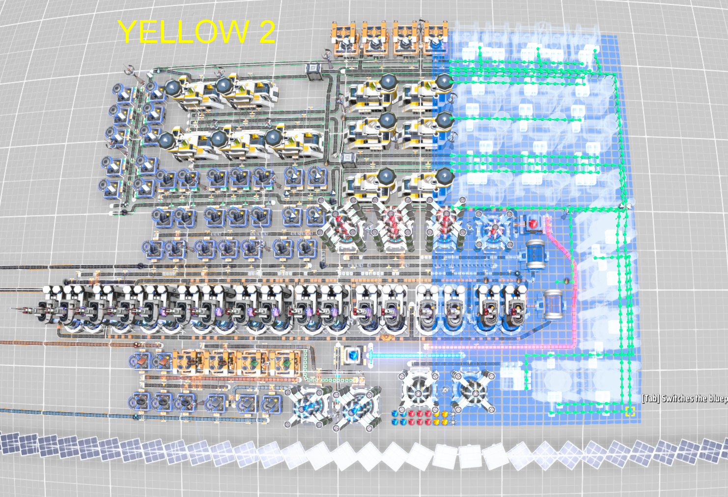Blue 100, Red 100 & Yellow 100 are all linked to each other. Use the small "science dots" to align all prints. Se picture with final result of all 3 factories buildt.