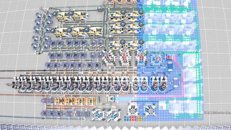 Produces 100 yellow science per min. Part 2. Part 1 here. Input: Coal, Titanium ore, Refined oil, Water. Se picture of where to connect to Refined oil. Use MK.II belt.
