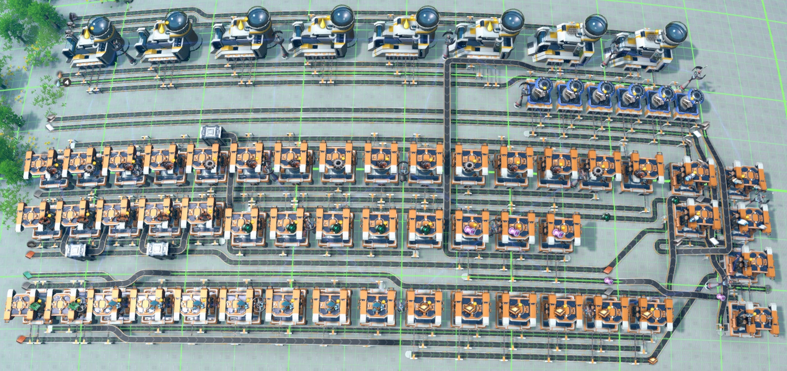Inputs are all on one side and are all marked. All belts are mk1, and most don't need a full belt. Outputs are all on the other side, 1 belt each, but they don't produce anything near a belt. The belts are there to run into an ILS when you can afford one.