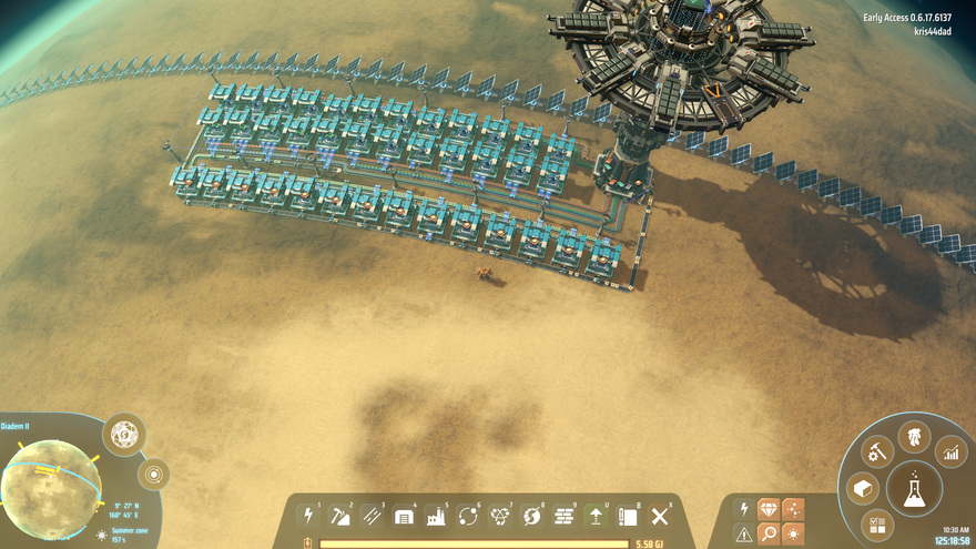 Processor plant with level 3 belts, assemblers, and sorters. Rectangular design allows for placement in most middle/upper middle latitudes. Tower is powered, needs shipments of Iron, and copper ingots, as well as High-Purity Silicon.