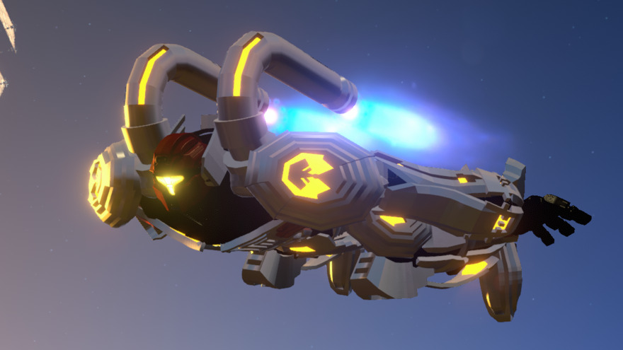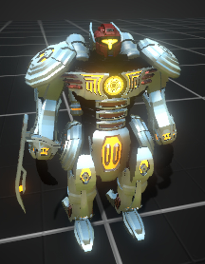 Titanium-based, copper and yellow-science accents to match core. (Personally not a fan of how pipe-y the jetpacks are but this is my first go.)