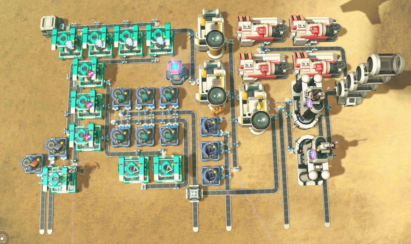 Mini 200/m Solar sail production. Input raw materials; Copper, Iron, Stone, Coal, Water, Crude oil. Generators are there to burn the excess hydrogen, you can change this for another use if wanted. Tanks are optional You'll need a Water pump & Oil extractor