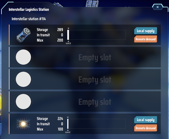 Antimatter Fuel rods and Space Warpers are demanded from the Interstellar Logistics port.
