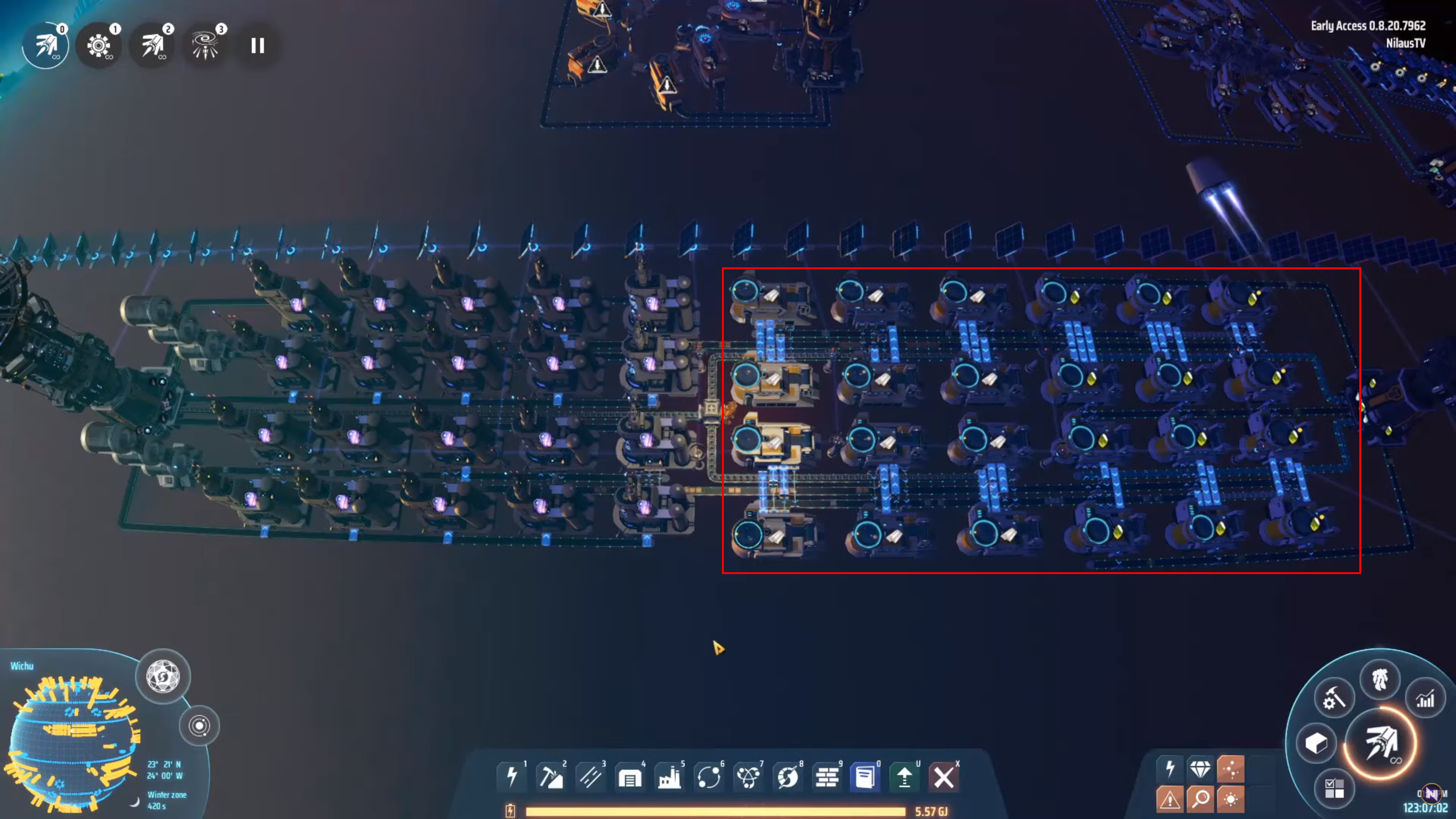 Total Production per second: 10 Refined Oil, 5 Hydrogen, 12 Plastic, 12 Organic Crystals, 9 Titanium Crystals, & 4 Diamonds. All of these products are consumed to create 2 Yellow Structure Matrices per second.