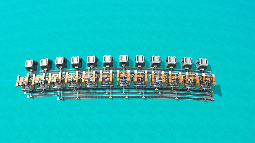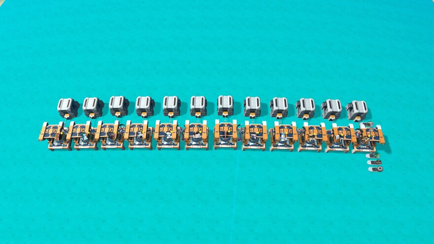 Begins automation of all basic facilities required for construction. Attach the belts on the far right to the same belts outlined in the Starter Ingredients and Blue Research blueprint located here: https://www.dysonsphereblueprints.com/blueprints/starter-ingredients-and-blue-research