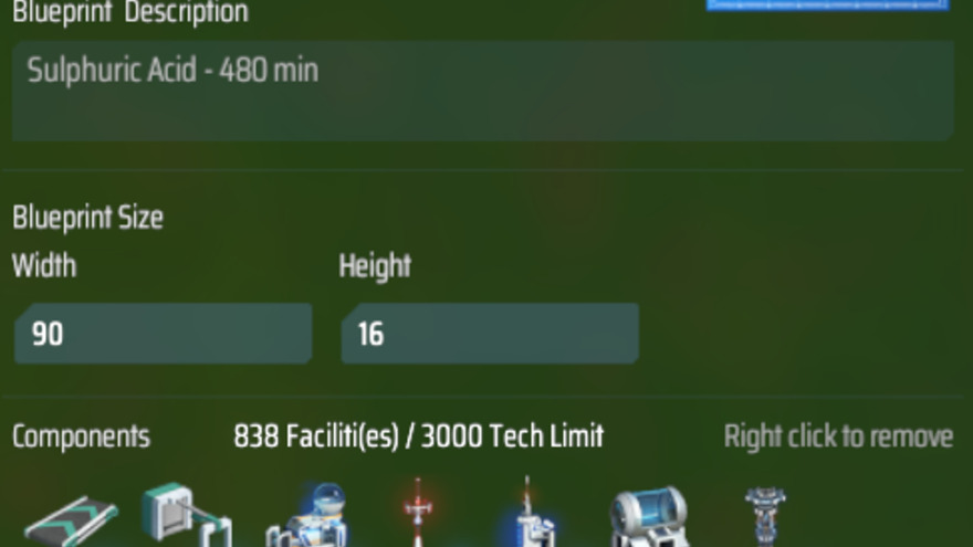 Early - mid game setup for Sulfuric Acid @ 480 min