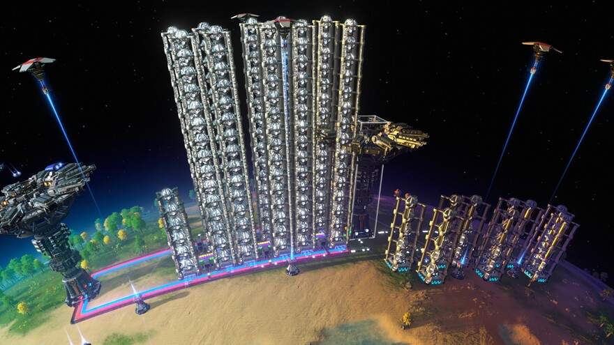 The Twin Tower system who can create universe matrix from other matrix feed. You can add my 9x5 lab tower to research behind, you need around 1250 universe/minute to feed 9 Towers of x5 Matrix Lab of research. This one is around half of the production , at 640 matrix/minutes.