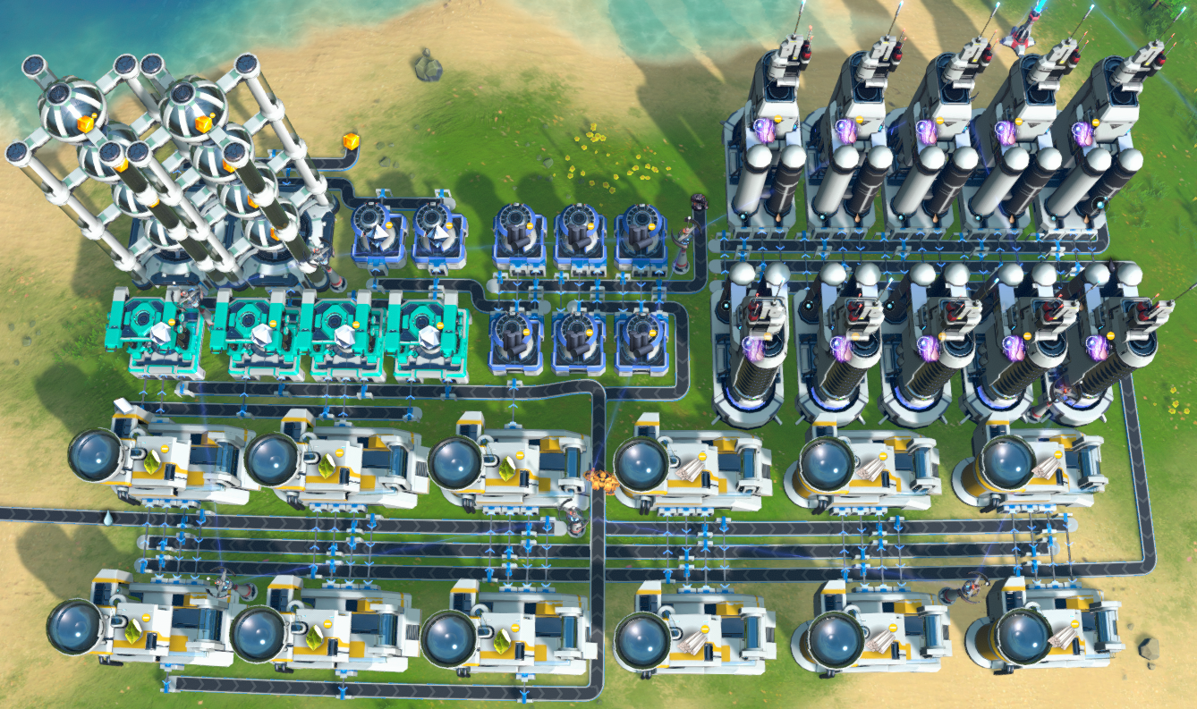 1 Yellow Science per second. No build-up of excess resources anywhere in the production line. Convenient rectangle format. Requires Mass Construction 3. Please dispose of hydrogen thoughtfully.
